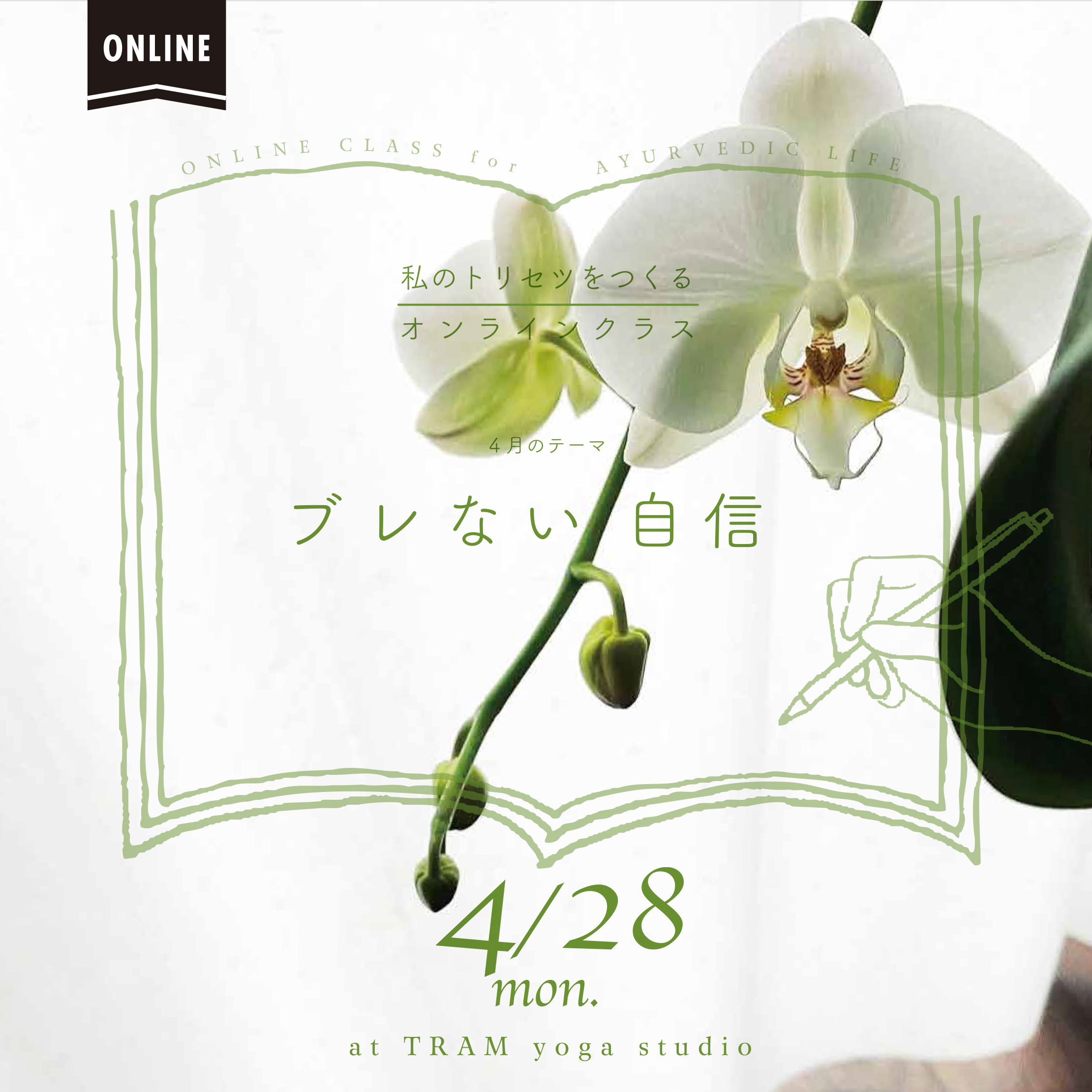 カラダとこころに問いかけながら、季節に沿った「私のトリセツ」づくりを試みるワークショップ形式のアーユルヴェーダオンラインクラス、4/28(月)のテーマは、「ブレない自信」です。
